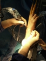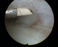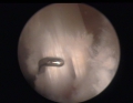 Les progrès techniques de la chirurgie mini-invasive du poignet ont permis de réaliser l'ablation de ces kystes sous arthroscopie, c'est-à-dire au moyen de deux mini incisions permettant, l'une d'introduire une caméra de 1,9 à 2,7 mm de diamètre et l'autre des instruments mécaniques et de radiofréquence de 2-3 mm de diamètre (figure 2). La base d'implantation du kyste est repérée (une IRM ou une échographie préalable ont guidé le choix des petits incisions-figure 3) et retirée. Le liquide mucoïde s'écoule alors dans l'articulation et est aspiré alors que la paroi du kyste est excisée par la profondeur sans nécessité d'incision supplémentaire (figure 4). On visualise ainsi les tendons extenseurs des doigts et du poignet qui doivent être contrôlés et protégés durant toute l'intervention (figure 5), constituant le seul risque spécifique de cette arthroscopie. l'intérêt de cette technique n'est pas qu'esthétique, bien que l'indication du geste opératoire soit essentiellement cosmétique (figure 6) mais surtout plus logique et efficace que la chirurgie dite classique, car il permet le repérage et l'excision du point de départ de cette "tumeur" bénigne, diminuant ainsi le risque théorique de récidive. On peut ainsi diagnostiquer et retirer des petits kystes du ligament scapho-lunaire (figure 7), il y a encore peu surnommés "occult ganglions" car peu accessibles aux autres procédés d'exploration du poignet, ils peuvent être douloureux notamment lors des appuis en flexion dorsale.